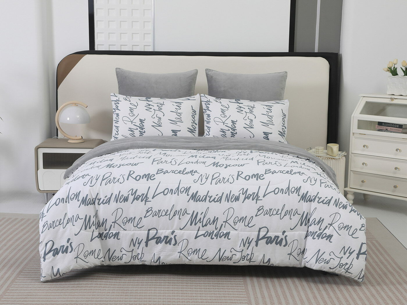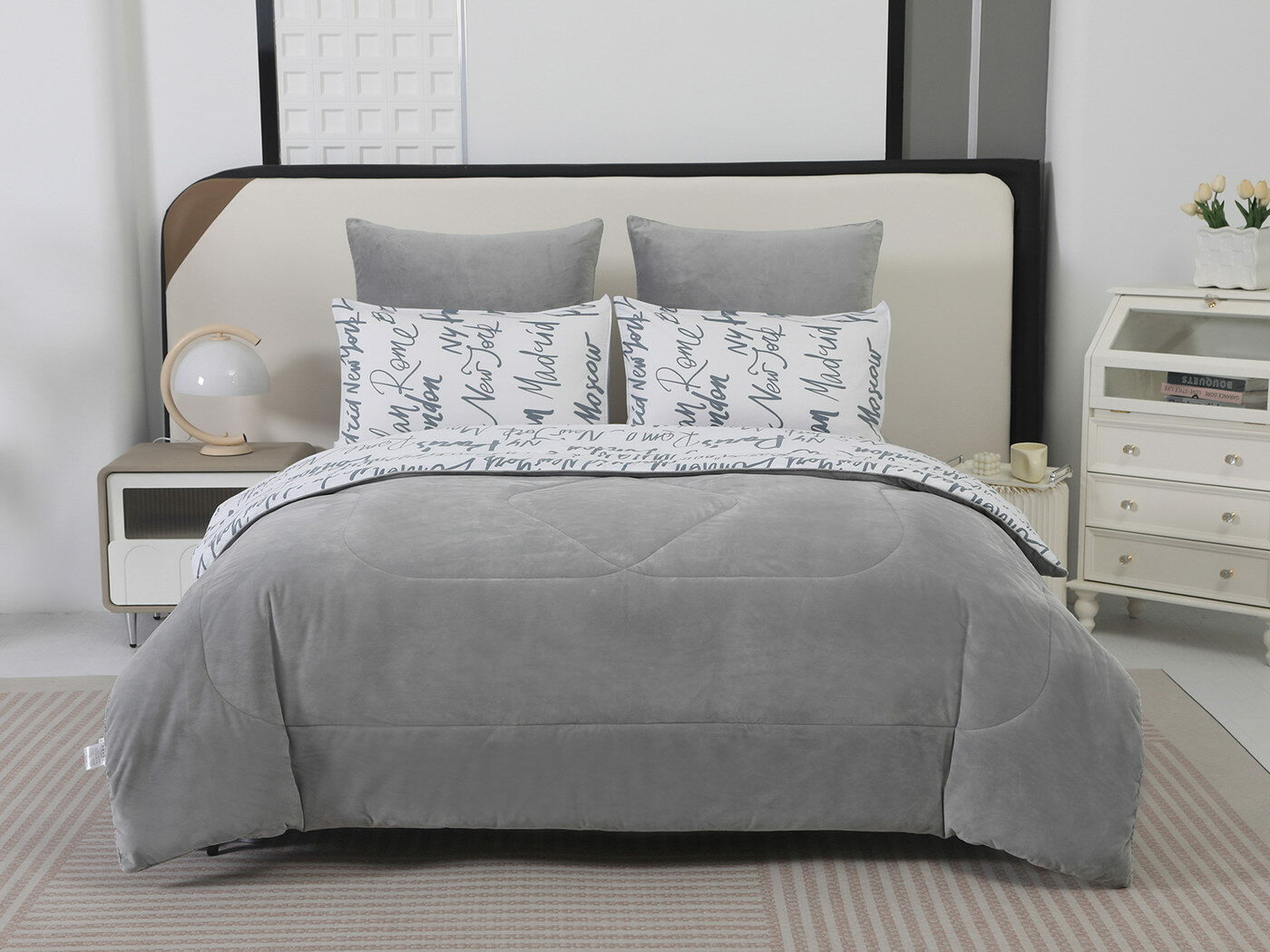 Новая коллекция комплектов «Роберто» с одеялом из однотонного велюра и принтованного сатина.