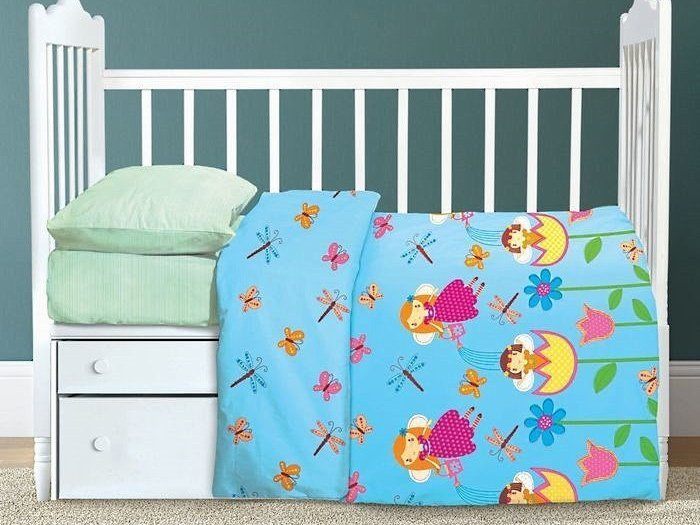 Комплект детского постельного белья в кроватку из сатина (100% хлопок, плотность 128 г/м2). Упаковка: ПВХ.
