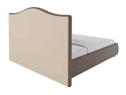 Каркас кровати представляет собой коробчатую конструкцию, выполненную из ДСП 16 мм. Внешние части модели обтягиваются рогожкой на слое мягкого наполнителя. Благодаря такой комбинации изделие обретает мягкость и повышенный комфорт. Материалы, реализуемые в обивке, отличаются стойкостью к износу и легкости чистки от загрязнений. При стандартной комплектации обратная сторона изголовья выполняется из технического материала. Однако по желанию его можно заменить на основную обивку кровати.