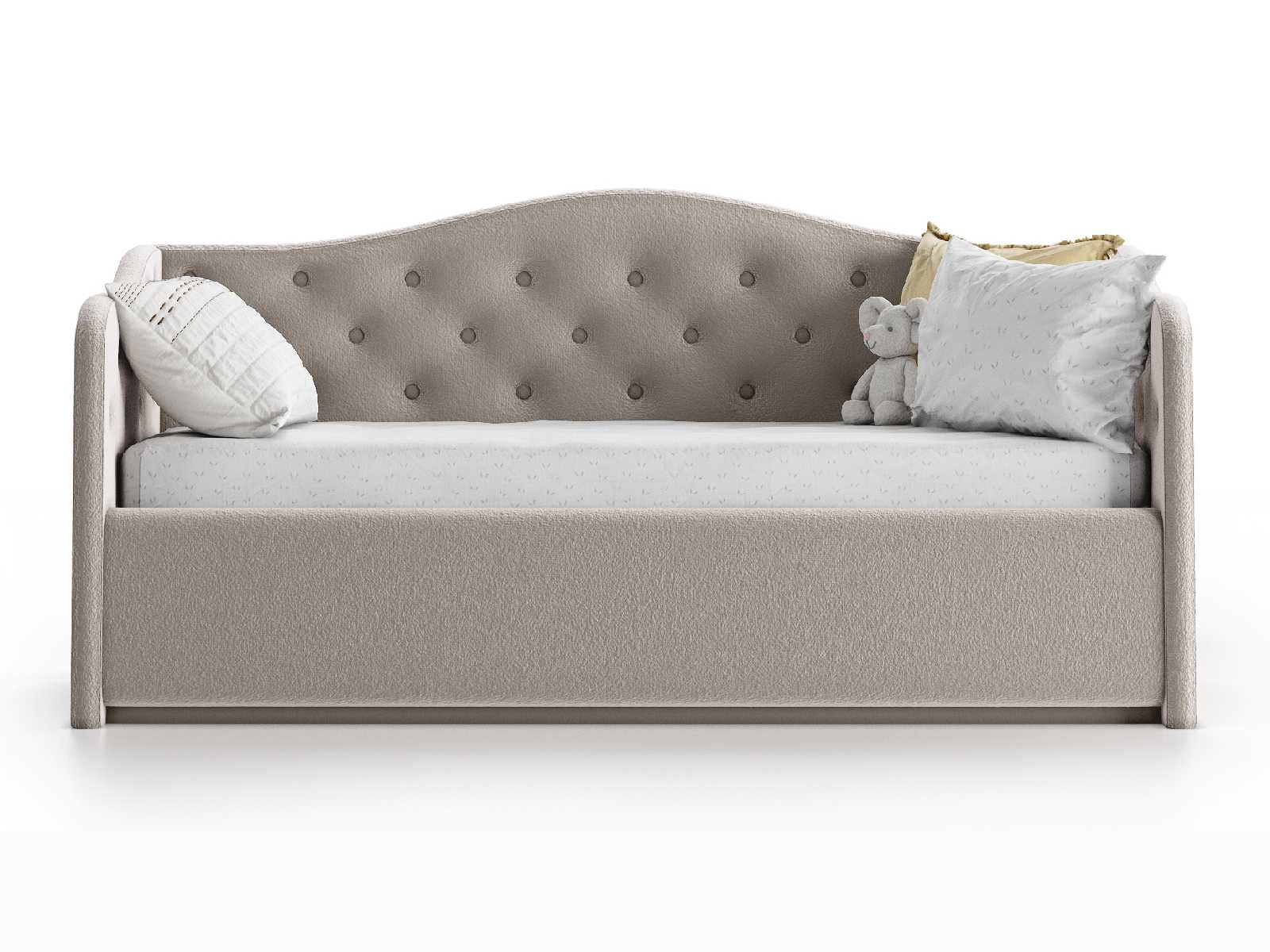 Прекрасная и воздушная кровать-софа Nuvola Elea идеально подойдет как взрослым, так и детям. Кровать выполнена в классическом стиле, изголовье-спинка и боковины кровати имеют плавные изгибы и декорированы изящными пуговицами.
