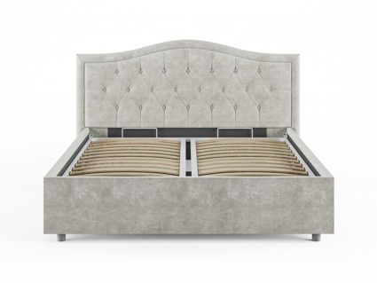 Элегантная интерьерная кровать Ancona, украшенная декоративными пуговицами, которые можно заменить на стразы. Модель изготовлена из ДСП. Обратная сторона изголовья обита спандбондом, но её можно выполнить из основного обивочного материала. При необходимости кровать может быть укомплектована разборным или неразборным металлическим основанием с ламелями, подъемным механизмом с бельевым ящиком, трансформируемым основанием Aquarius (размером 160-200).