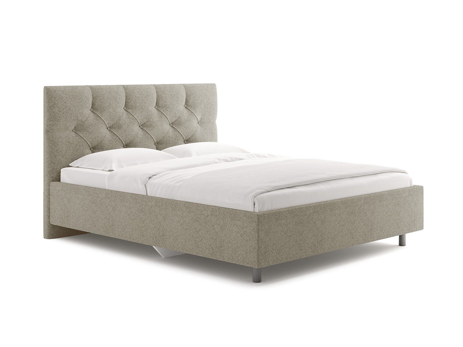 Элегантная классическая кровать с эффектной каретной стяжкой. Модель изготовлена из ДСП. При необходимости кровать может быть укомплектована подъемным механизмом с бельевым ящиком или трансформируемым основанием Aquarius (размером 160-200).