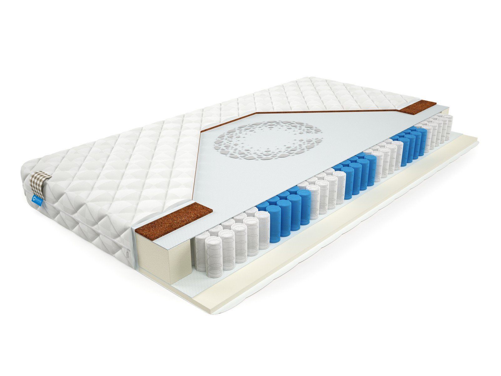 Матрас BioCrystal Robert недорогой двухсторонний матрас. Матрас c ортопедическим эффектом на основе семи-зонного пружинного долговечного блока независимых пружин SIlverSpringPocket 7 zone. Данный блок насчитывает 580 металлических пружин на одно спальное место, это оптимальное количество пружин для бюджетного матраса. 7 зональный пружинный блок SSP 580 значительно прочнее обычного блока независимых пружин, и имеет большее количество витков, что, в свою очередь, лучше сказывается на упругости матраса и качестве сна. Матрас насчитывает семь зон жесткости и правильно повторяет изгибы позвоночника во время сна или отдыха. Жесткость матраса придают 1 сантиметр латексированного кокосового волокна c 1 стороны, это сторона матраса будет немного жестче. А с другой стороны матраса 2 см пенополиуретана. ППУ – это современный материал, очень часто его называют искусственный латекс, так как по своим характеристикам, он анатомичный и не жесткий материал. Пенополиуретан усиливает анатомический эффект матраса. Это оптимальный выбор для тех, кто до конца не определился с жесткостью матраса.