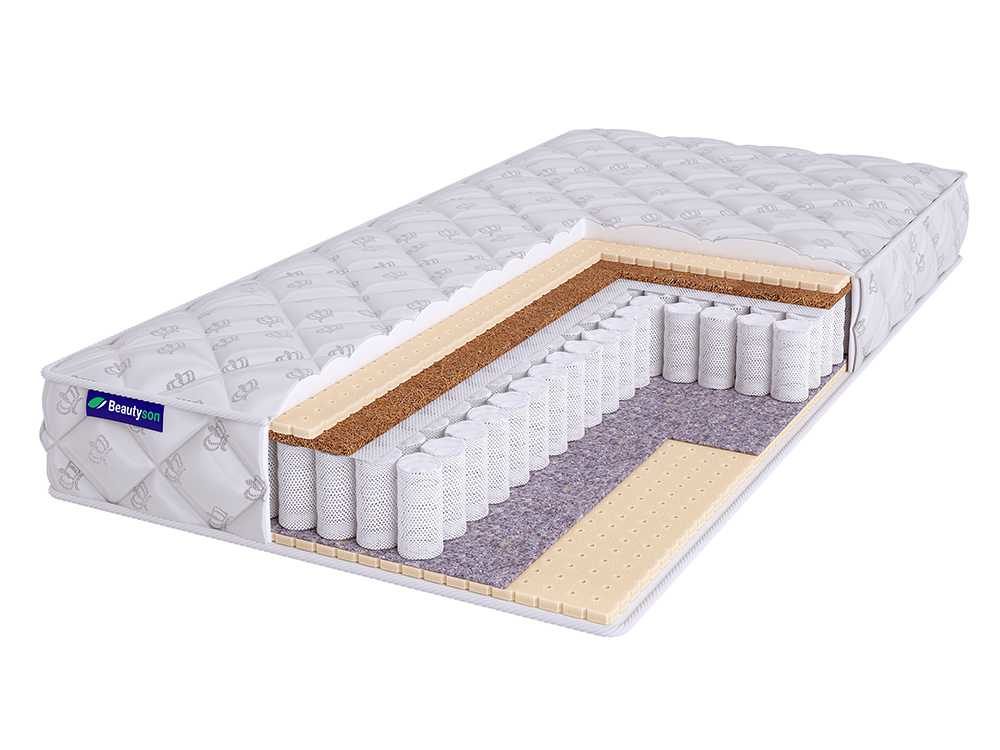 Наполнители – кокосовая койра и натуральный латекс. Кокос отвечает за правильную поддержку. Он гарантируют, что тело и спина спящего получат правильную опору на протяжение всего отдыха. Натуральный латекс даёт комфортную адаптивность и подстройку под анатомию человека.