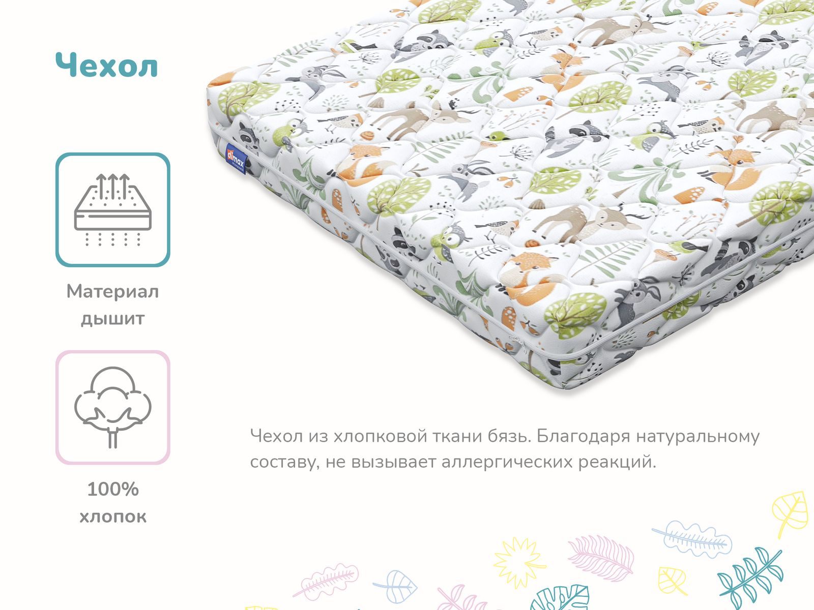 Димакс Лучик – это детский беспружинный матрас с двумя уровнями жёсткости, где одна сторона более твёрдая за счёт кокосовой койры, а другая – мягче, благодаря пене Balance Foam. Такая конструкция даёт ребёнку возможность по мере взросления выбирать наиболее комфортное спальное место, сохраняя при этом правильную поддержку для позвоночника.