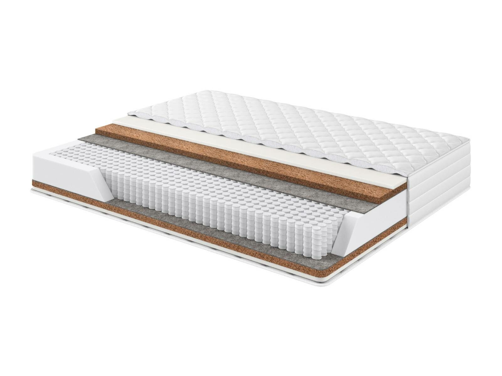 Кокосовая койра латексированная.Экологически чистый, долговечный природный материал, получаемый из межплодника ореха кокосовой пальмы, произрастающей в тропических районах Юго-Восточной Азии. Будучи натуральным материалом, койра, тем не менее, не вызывает аллергических реакций, и наоборот, выросшее под солнцем тропиков, кокосовое волокно впитало в себя огромный запас энергии, которая создает на много лет мощное благотворное биополе. В качестве наполнителя для матрасов кокосовая койра обеспечивает оптимальную упругость и долговечность матраса. Для устранения ломкости и увеличения срока эксплуатации, кокосовое волокно пропитывают латексом. На выходе получается монолитная плита: прочная и долговечная. Латексная пропитка позволяет выдерживать большие нагрузки и препятствует деформации и расслаиванию наполнителя.