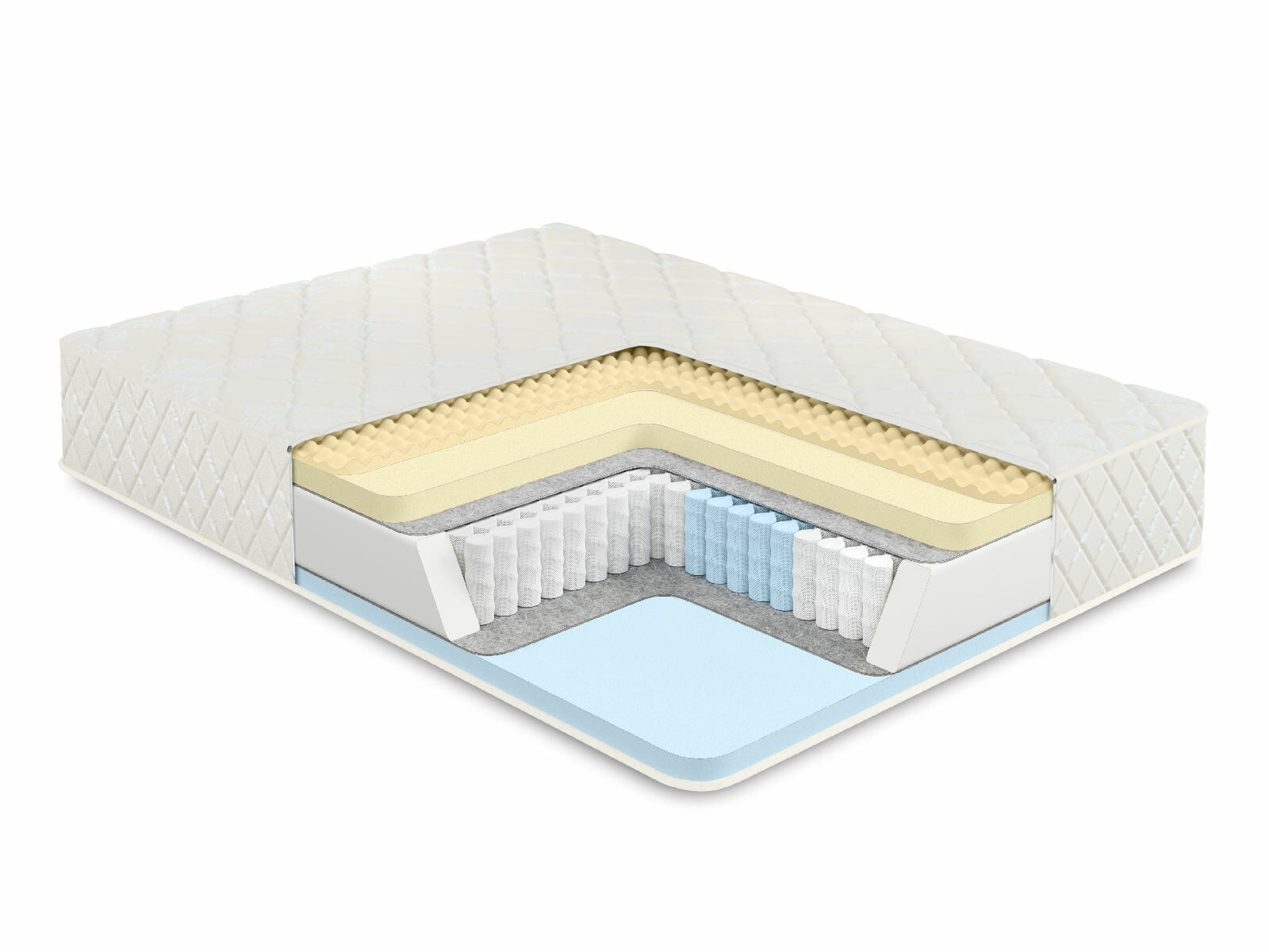 Пружинный матрас в основе которого многозональный независимый пружинный блок 1000 пружин на спальное место обеспечивает ортопедическую поддержку и комфорт во время сна. Независимые пружины подстраиваются под формы человека, потому что каждая пружина находится в отдельном кармашке и обеспечивает равномерное распределение веса.
