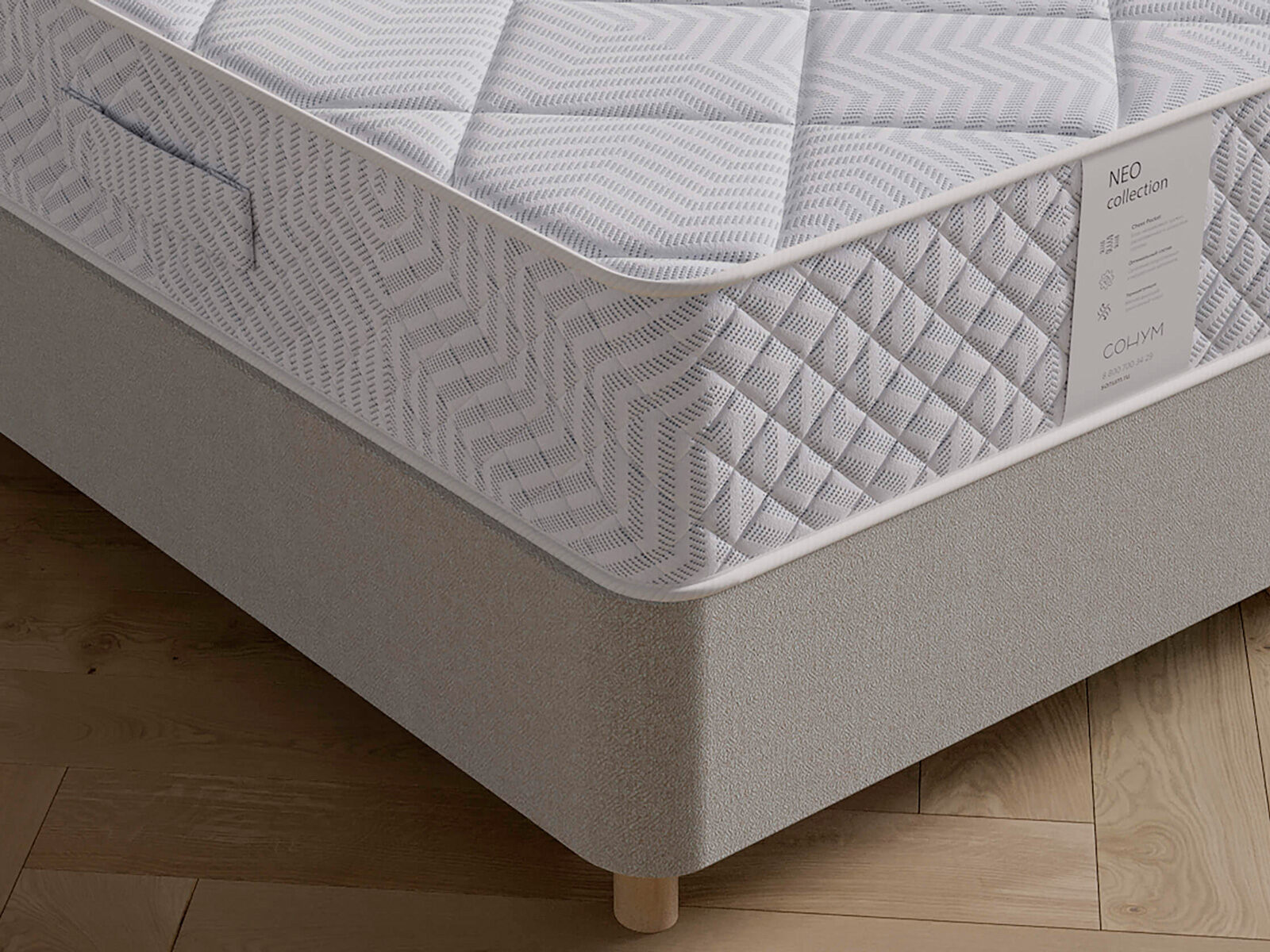 Матрас с различным уровнем жесткости на основе блока ChessPocket – независимые пружины, расположенные в шахматном порядке для равномерной поддержки позвоночника. С одной стороны - сочетание массажной пены и кокосовой койры создает среднюю степень жёсткости для комфортного и расслабленного сна, а с другой – кокосовая койра оказывает ортопедический эффект за счёт жёсткости.