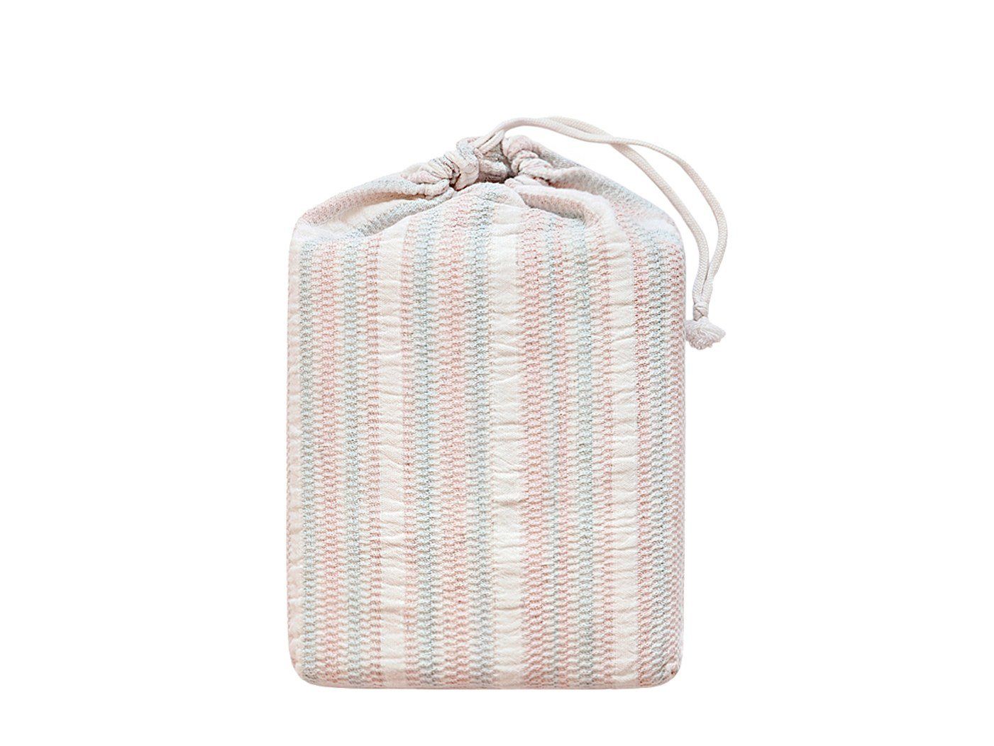 Легкое покрывало "CANDY" изготовлено из хлопковой рогожки. Этот натуральный материал имеет 'шахматный' рисунок нитей, обусловленный особенностями плетения. Покрывало прочное, износостойкое, обладает отчетливой фактурой. Сочетание трех цветов: экрю/розовый/голубой выглядит нежно и стильно. Покрывало упаковано в мешочек на завязках, поэтому его удобно взять с собой в поездку.