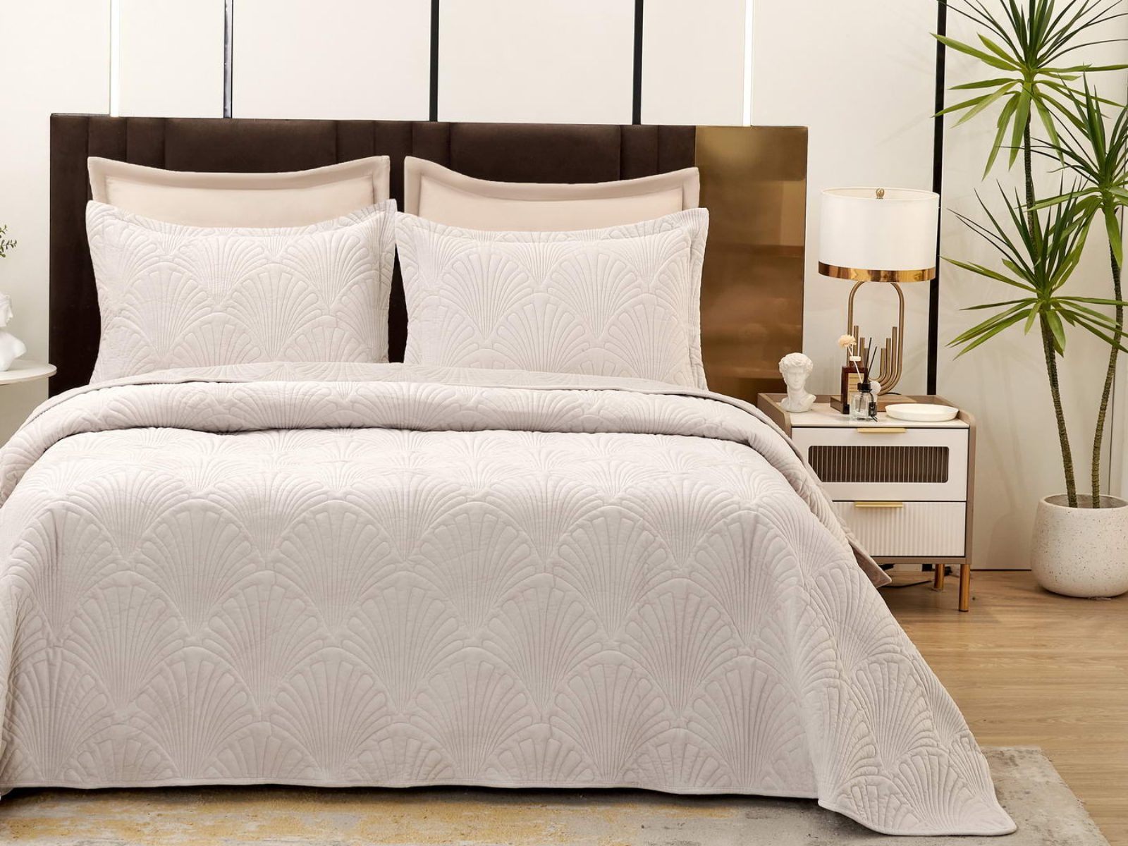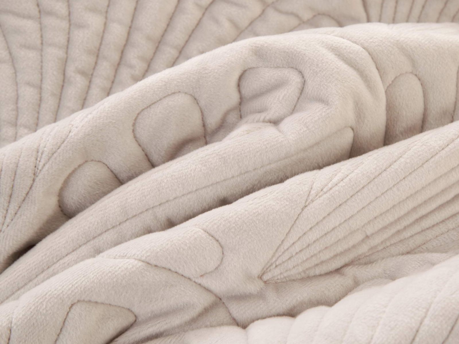 Роскошное велюровое покрывало Ариэль станет изюминкой любого интерьера, ведь оно потрясающе выглядит и приятное на ощупь. Обратите внимание на стежку покрывала – она выполнена в виде ракушек с эффектом 3D. Из-за особого плетения, велюровая ткань покрывала отражает свет и красиво переливается при различном освещении.