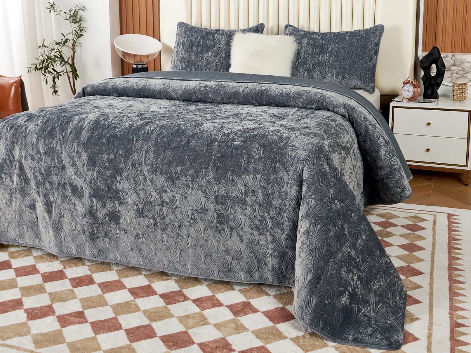 Очаровательное покрывало "Розалин" – идеальный спутник вашего отдыха и уюта. Это воплощение комфорта и стиля создано из высококачественного бархата в различных трендовых цветах и обязательно подчеркнёт уникальность вашего интерьера.