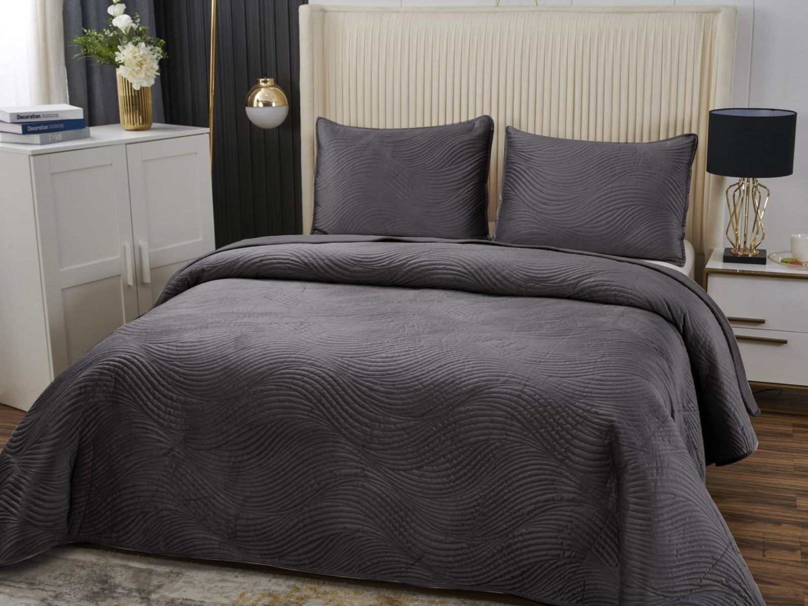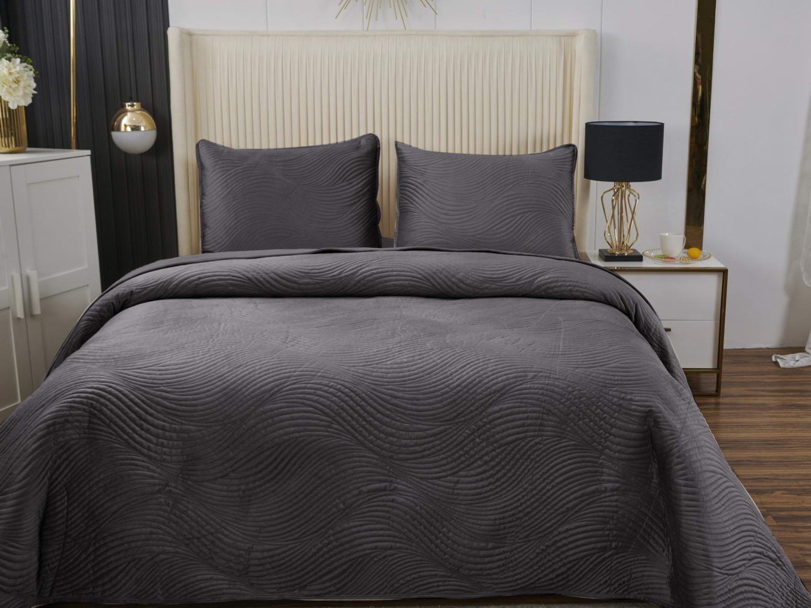Традиционно в японском саду камней линии на песке символизируют отсутствие хаоса и спокойствие. Такой плавный узор напоминает размеренные потоки воды, которые оказывают на психику благоприятный эффект. Изящное покрывало Жизель с рисунком в виде подобных линий поможет обрести умиротворение, ведь в современном мире так важно уметь привести мысли в порядок. Помимо положительного воздействия на нервную систему, рисунок в виде волны придаст изысканности и утонченности Вашему интерьеру.