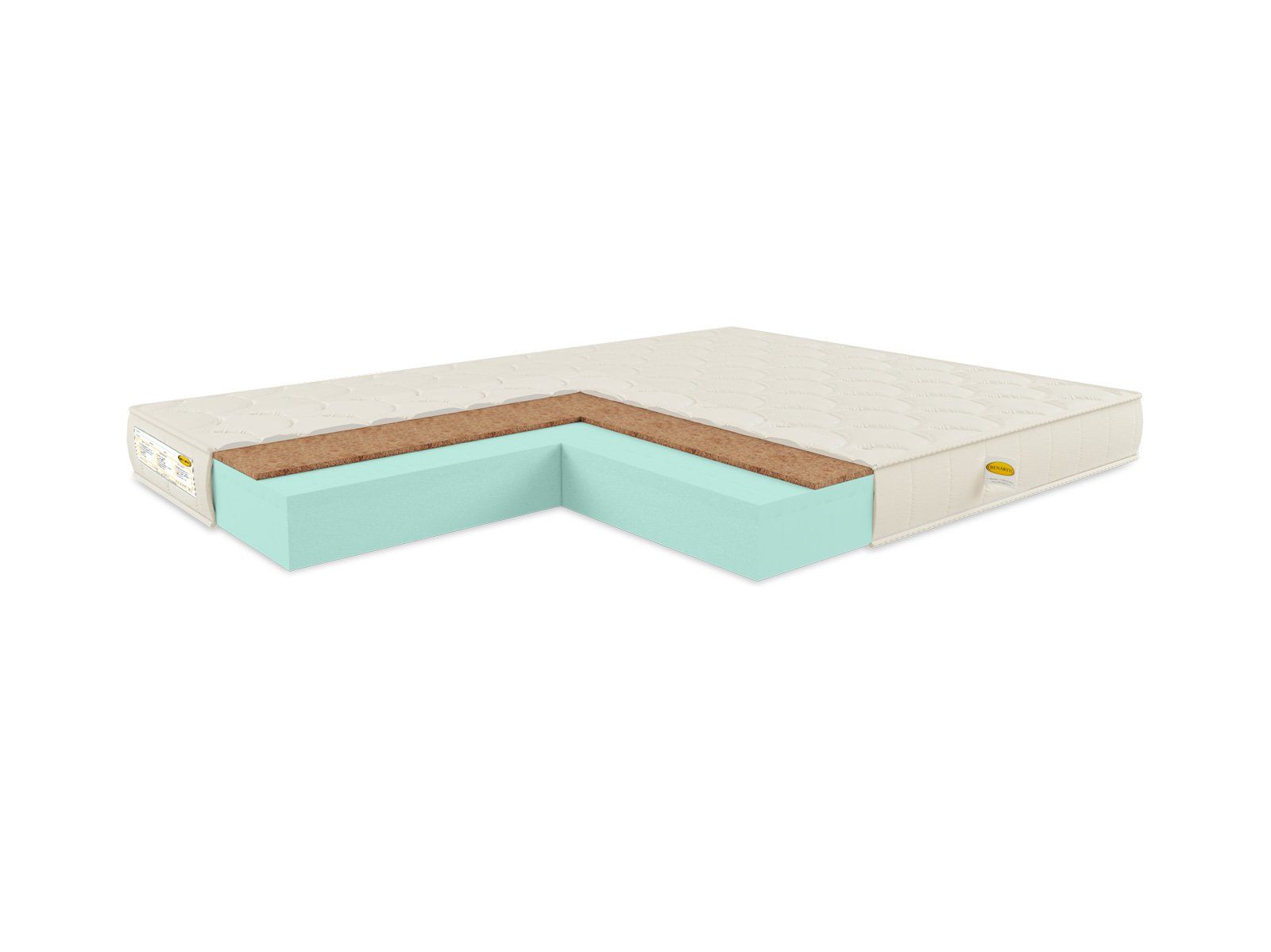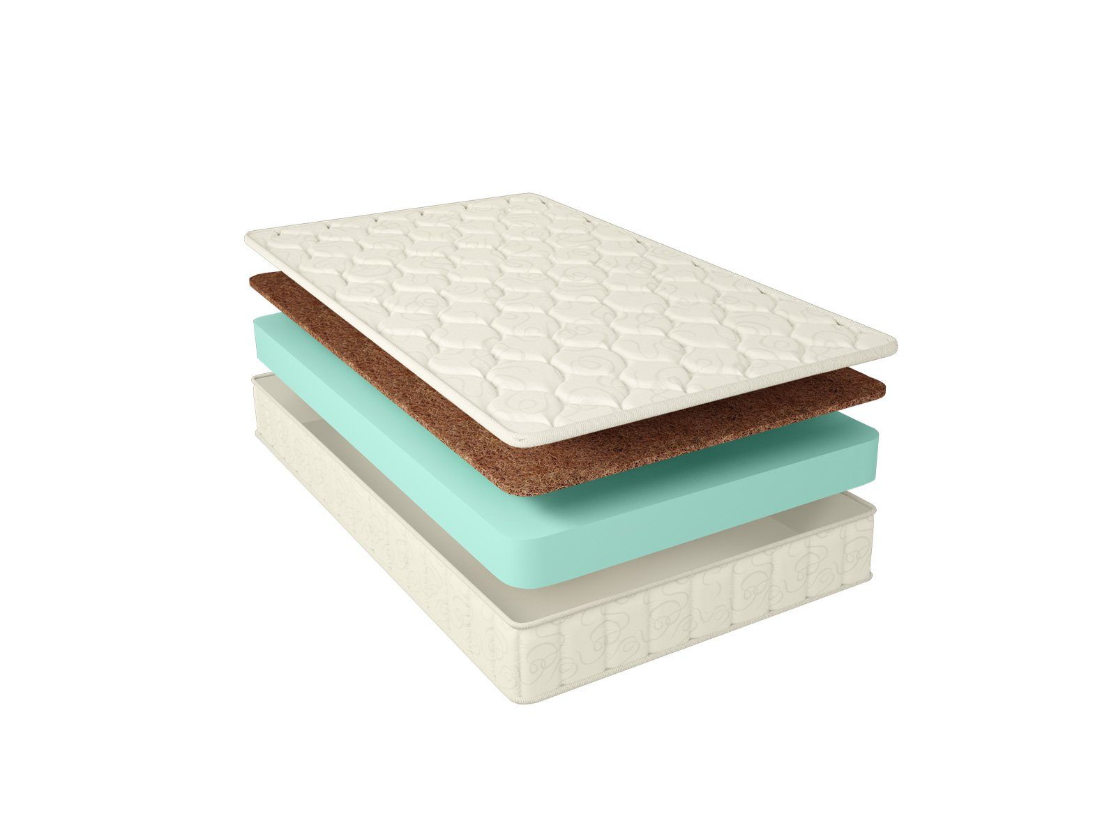 Внутри матраса установлены два слоя наполнителей в различной толщине. Если на кокосовую койру приходится 1 см, то на искусственный латекс сразу 14 см. Такая пропорция даёт матрасу хорошую упругость и пружинистость, а также обеспечивает разные качества двух поверхностей. Кокосовая сторона лучше поддерживает спину, благодаря выраженным ортопедическим свойствам, а латексная более комфортная и адаптивная. В зависимости от настроения или сезона вы сможете легко перевернуть матрас за боковые ручки и получить тот уровень комфорта, который требуется.